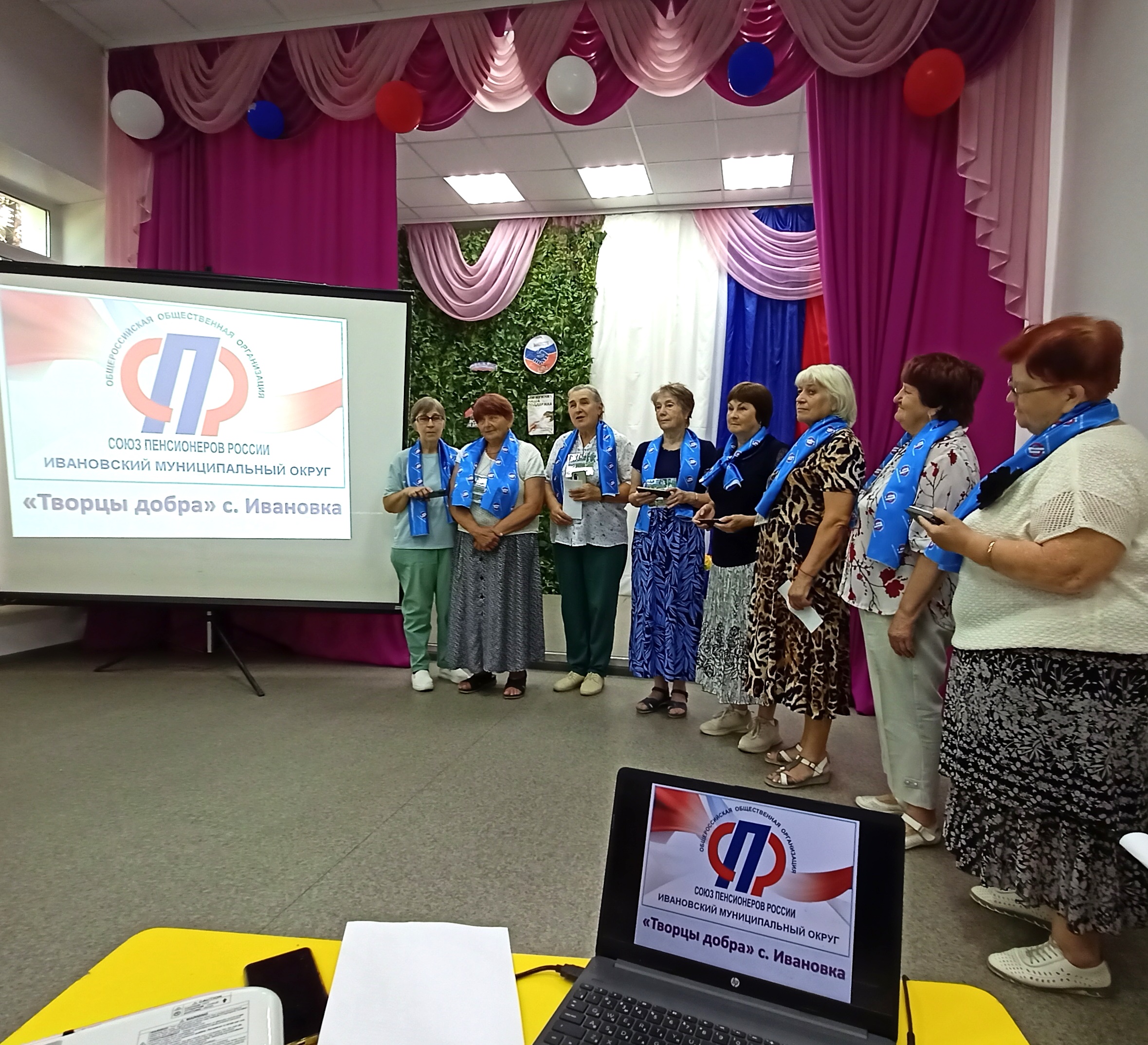 На таких мероприятиях самое ценное – это живое общение участников встречи. И такую возможность предоставили хозяева собравшимся волонтерам за обеденным столом с ароматным чаем и песнями от души. Нашлось здесь место не только для обсуждения, кто каким способом плетет сети и заливает окопные свечи, но и для теплых поздравлений с юбилеем Инну Иосифовну Ковалевскую и с днем рождения Надежду Ивановну Попову, Почетного председателя союза пенсионеров, более 20 лет возглавляющую группу пенсионеров села Троицкое. Очень тронули именинниц душевные слова Натальи Григорьевны Адаменко, руководителя группы волонтеров села Ивановка, которая вручила им букеты цветов и памятные сувениры, а группе «Берегини» — обереги.