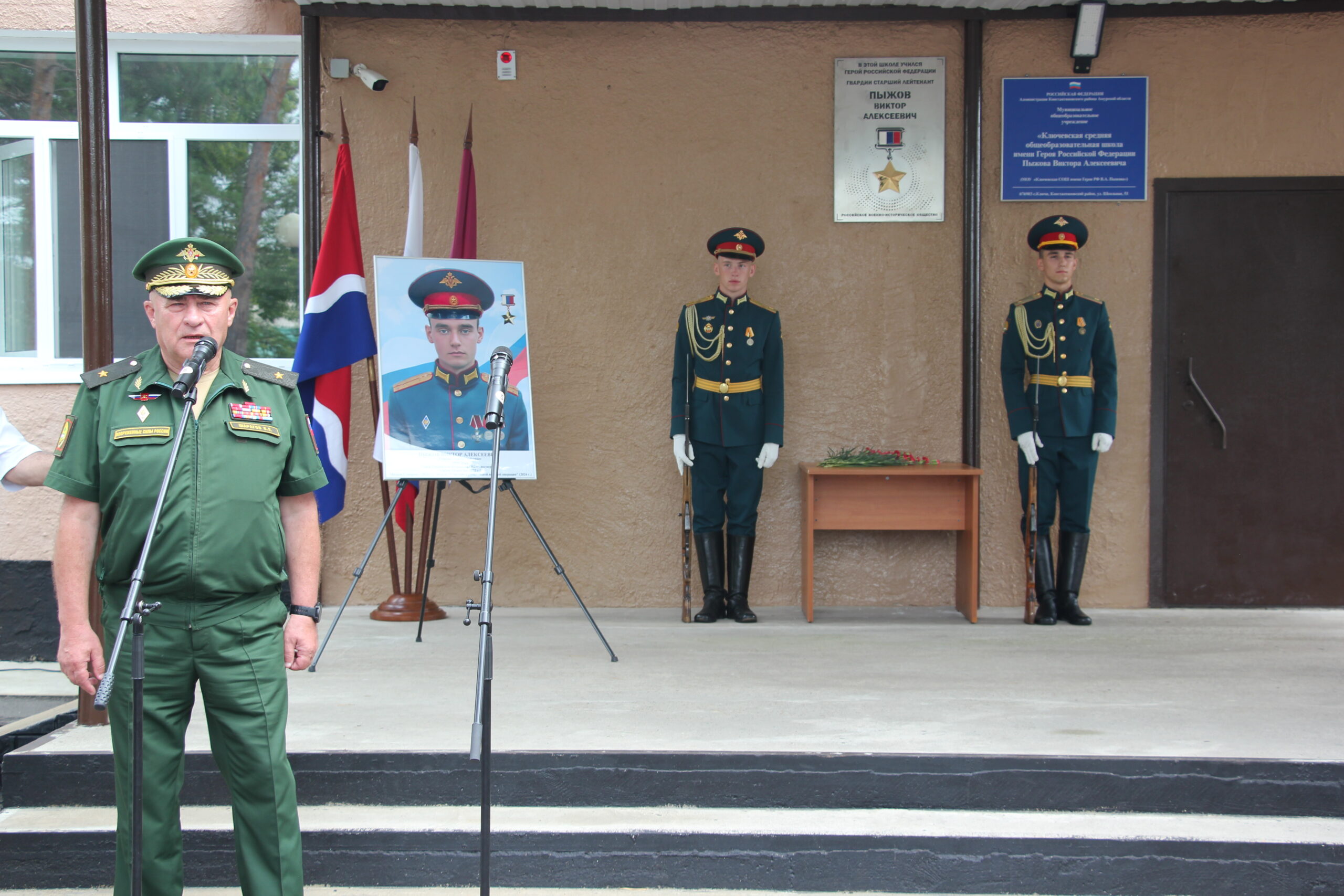 В селе Ключи состоялась торжественная и проникновенная церемония открытия мемориальной доски выпускнику местной школы Герою Российской Федерации старшему лейтенанту Виктору Алексеевичу Пыжову, погибшему при исполнении воинского долга.
