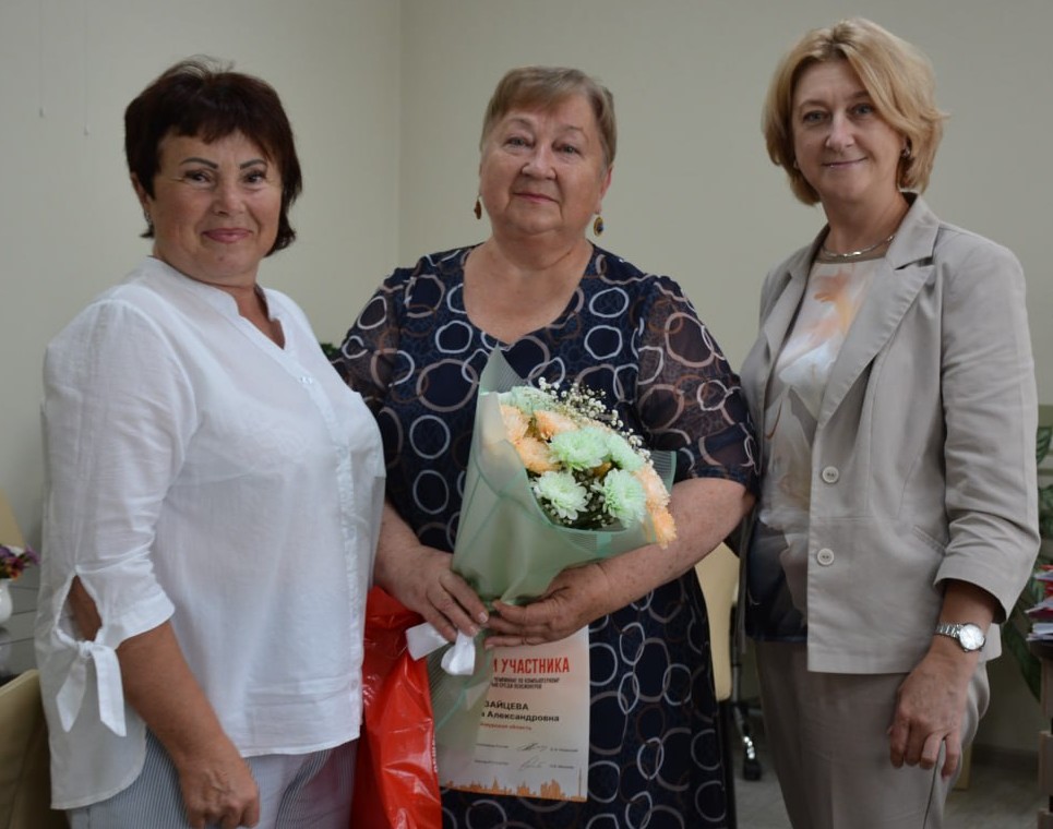 В завершение обстоятельного общения Наталья Викторовна и Ольга Владимировна выполнили почетную миссию, вручив Рохманенко И.В. награду победителя в номинации ««Здоровый образ жизни- основа долголетия» и сертификаты другим участникам команды.