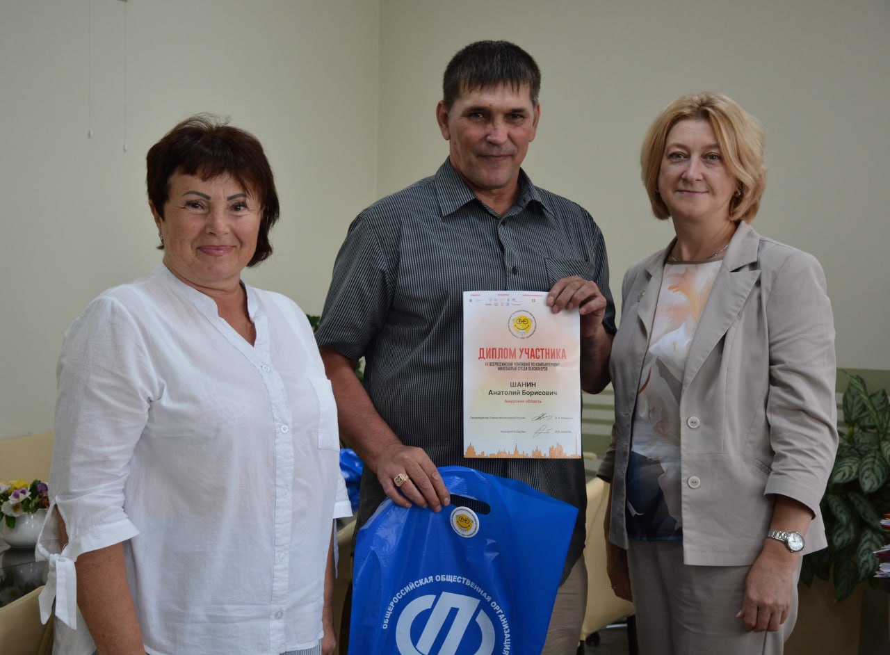 Присутствовавшая на встрече Колесникова Ольга Владимировна, председатель Амурского регионального отделения Союза пенсионеров, присоединилась к поздравлениям участников, поблагодарила министерство и лично Наталью Викторовну за постоянную поддержку регионального союза пенсионеров в его деятельности. «Региональный союз пенсионеров , местные отделения, созданные в муниципальных образованиях области,- отметила Ольга Владимировна,- серьезно работают над проблемой повышения компьютерной грамотности старшего поколения. В некоторых местных отделениях, например в городе Завитинске, уже несколько лет подряд действует клуб компьютерной грамотности, где старшее поколение знакомится с новыми информационными технологиями, которые могут быть полезны старшему поколению. Благовещенское местное отделение в этом году во взаимодействии с АНО ДПО «Амурский центр опережающей профессиональной переподготовки» организовали обучение 4 групп старшего поколения вопросам компьютерной грамотности, использованию смартфонов, текстовых редакторов, электронных таблиц.»