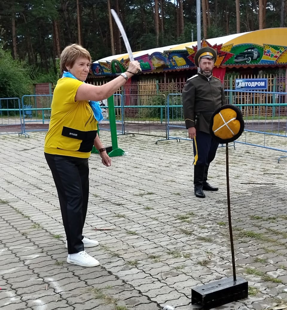 Представители Кумарского казачьего округа всем желающим позволяли, после очень строгого инструктажа о мерах безопасности и приемах обращения с шашкой, рубить шашкой лозу, примеривать на себя амуницию.