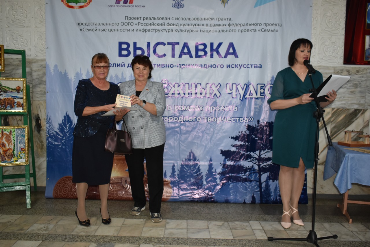 Председатель Амурского регионального отделения Союза пенсионеров России Колесникова Ольга Владимировна, выступившая перед присутствующими, высоко оценила представленные работы, сказала много добрых слов в адрес умельцев; особо отметила работы мужчин- любителей прикладного творчества.