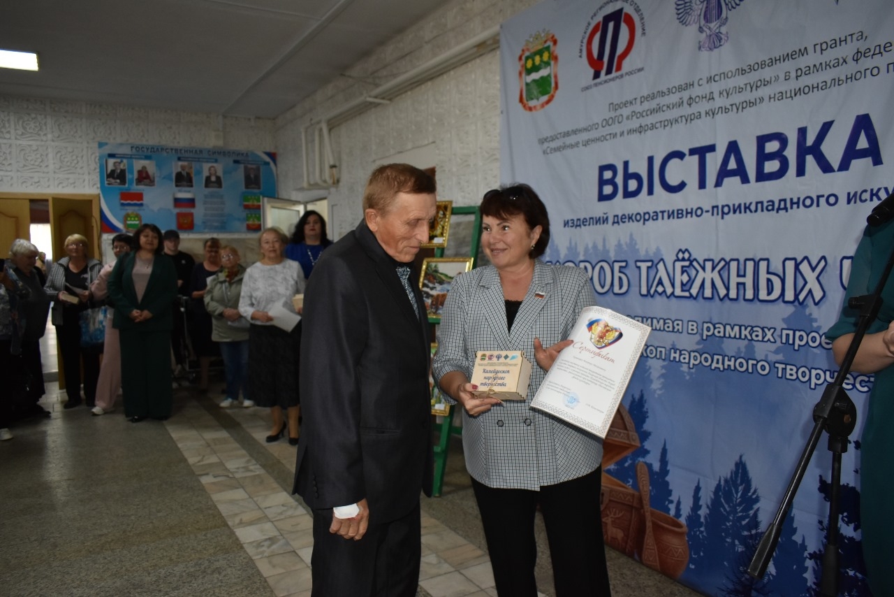 27 сентября 2025 года в городе Шимановске прошло торжественное открытие выставки декоративно- прикладного искусства людей старшего поколения под названием ,,Короб таежных чудес» в рамках проекта ,,Калейдоскоп народного творчества».