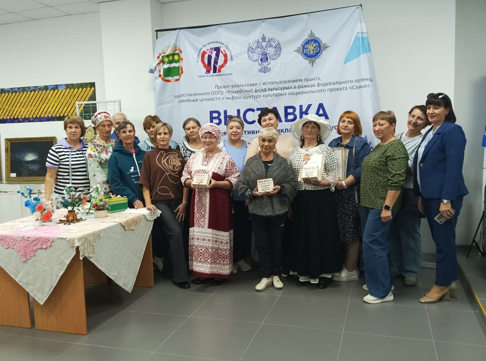Проект «Калейдоскоп народного творчества» реализован Амурским отделением ООО «Союз пенсионеров России» с использованием гранта, предоставленного ООГО «Российский фонд культуры» в рамках федерального проекта «Семейные ценности и инфраструктура культуры» национального проекта «Семья».