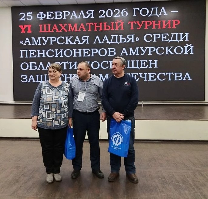 Шесть шахматных турниров среди пенсионеров проведено в Амурской области, и на всех шести турнирах участвовали Калита А.А., Малхасян Л.Н., Бурак В.Л., Гладков А.Ф., Емельянова Т.Е., Филиппов А.Б. Как выразился Малхасян Л.Н.: «Я участвую в шахматных турнирах не с надеждой на победу, а с уверенностью, что шахматы – это работа мозга, который нужно постоянно заставлять работать».