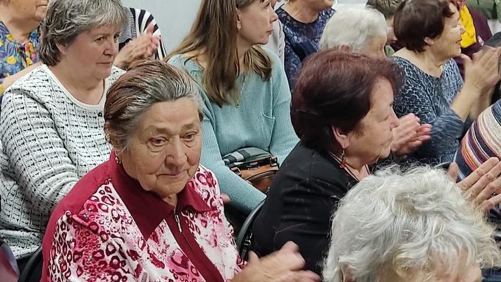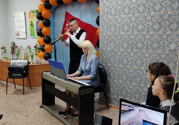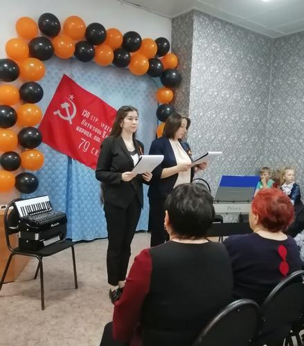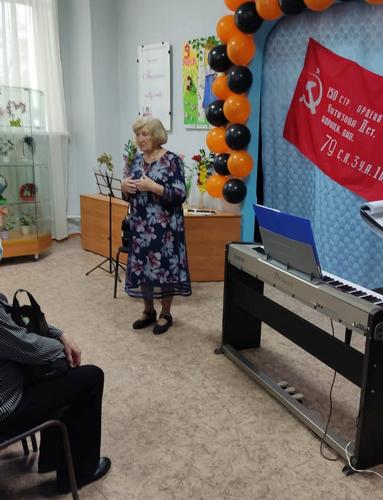 С предстоящим Днём Победы собравшихся поздравили преподаватели и воспитанники школы искусств, а также дети центра «Доверие» (детский дом). Ветеранам войны и труда коллективом музея и воспитанниками детского дома были вручены поздравительные открытки и броши из фоамирана и георгиевской ленты ,сделанные своими руками.