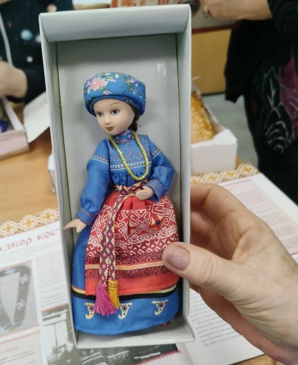 Несколько экземпляров Екатерина Игнатьевна принесла с собой на встречу. Посетители центра смогли познакомиться через историю костюма с историей народов России.