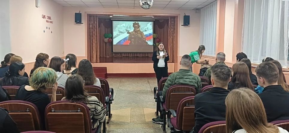 В актовом зале общежития Белогорского техникума пищевой промышленности (четвертое отделение «Амурского колледжа сервиса и торговли») 26 марта 2026 года члены Белогорской Городской Общественной Организации «Союз Пенсионеров» Татьяна Семенова и Ольга Капштык