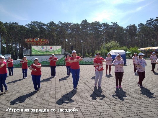День начался спортивной акцией «Утренняя зарядка со звездой».