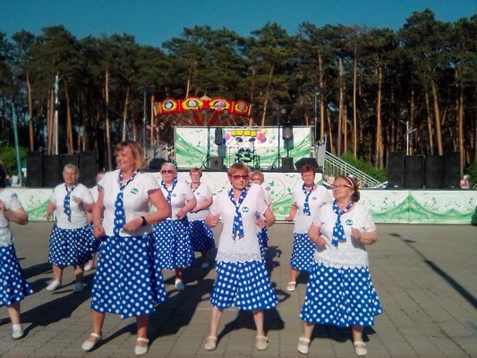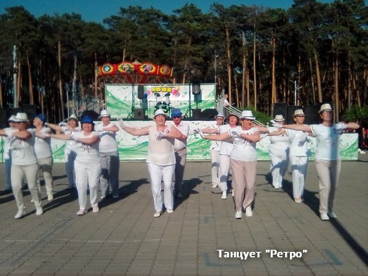 Торжественный парад открыли танцевально-оздоровительный клубы Белогорской Городской Общественной Организации «Союз Пенсионеров» «Максимум» и «Ретро» (руководители Цура Е. А., и Семенова Т. С.).