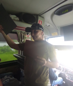 Путешествие было организовано в комфортабельном автобусе, на лобовом стекле которого был размещен логотип поездки, разработанный и изготовленный членами правления АРО СПР.