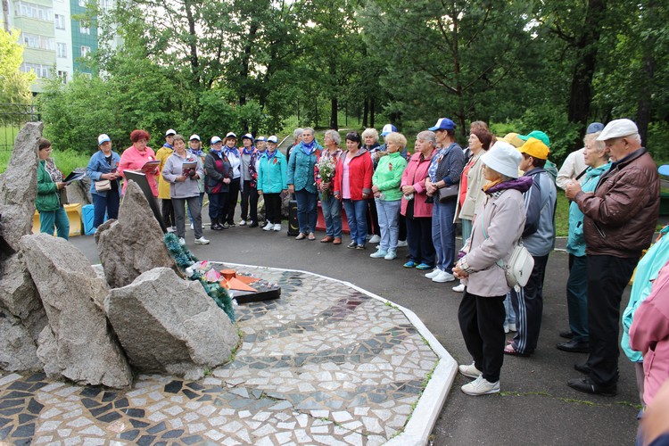 Затем все отправились на возложение цветов к памятнику героям ВОВ, расположенному в парке Нового города (пгт Талакан), здесь же состоялся митинг и под звуки колокола пенсионеры области возложили цветы и зажгли свечи у памятника. В конце мероприятия было исполнено попурри на тему военных песен.