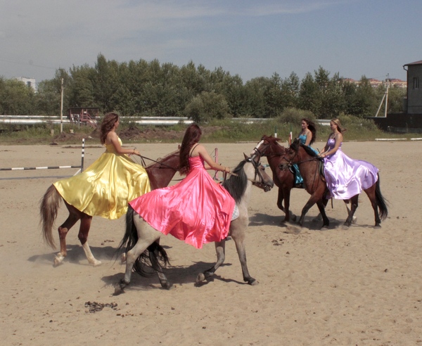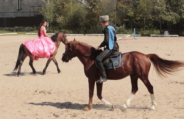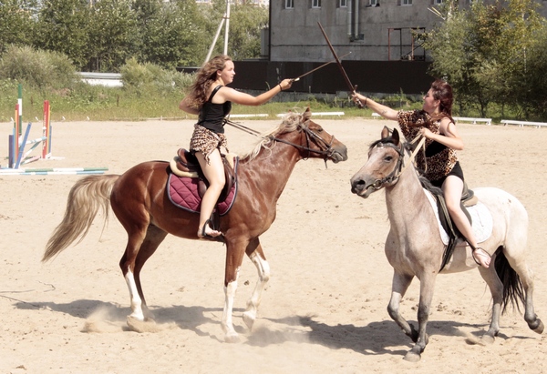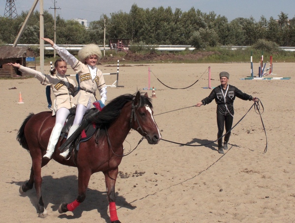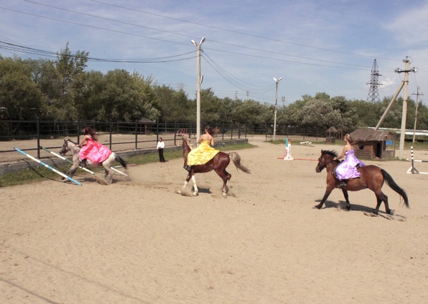 И наконец – конное шоу. Зрители с удовольствием и восхищением наблюдали за номерами и трюками в исполнении юных наездников клуба (а это в основном девушки): вальс, джигитовка, преодоление барьеров и огненного препятствия, «Амазонки», игры «Поцелуй девушку» и «Стойло».