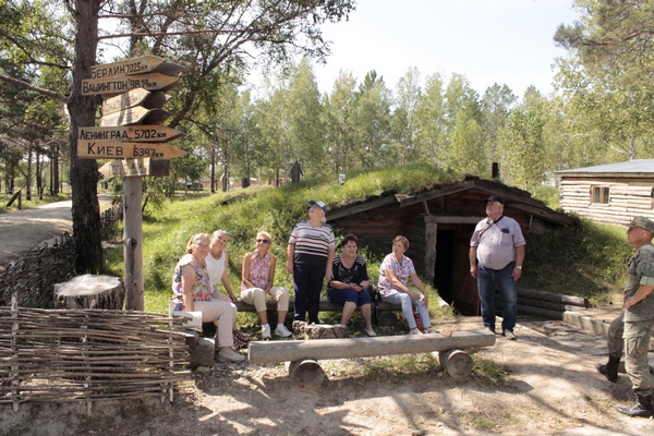 В Партизанской деревне туристы смогли осмотреть такие объекты как: жилые землянки; красный уголок; штабную землянку; полевой клуб; школу для детей партизанского отряда; полевую столовую (пункт хозяйственного довольствия); ледник для хранения провианта; КПП и наблюдательные вышки; школу диверсанта; землянки бытового обслуживания (вещевая мастерская); бани и медицинский пункт.