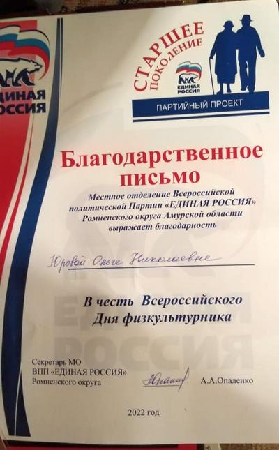 Пенсионеры в честь дня физкультурника были отмечены благодарственными письмами министра физической культуры Амурской области и главы администрации Ромненского муниципального округа. Им также были вручены золотые и серебряные значки «ГТО».