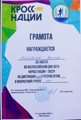Виктор Николаевич Набивачев занял 1 место на дистанции 3000 метров в возрастной категории 60+ и награждён грамотой и медалью.