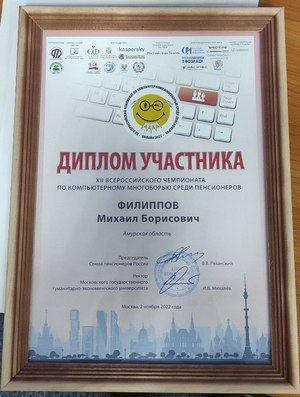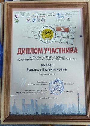 Управляющая Отделением ПФР по Амурской области Елена Владимировна Гончарова вручила Дипломы участников ХII Всероссийского чемпионата по компьютерному многоборью среди пенсионеров и памятные сувениры Михаилу Филипповну и Зинаиде Кургак.