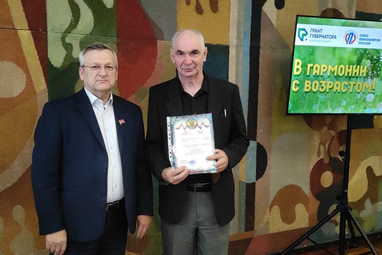 Председатель Правления регионального отделения «Российской партии пенсионеров за социальную справедливость», депутат Законодательного Собрания Амурской области Александр Василенко и председатель правления АРО СПР Елена Самбур наградили девять авторов лучших работ дипломами и сертификатами.