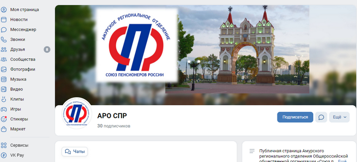 Публичная страница Амурского регионального отделения Общероссийской общественной организации «Союз пенсионеров России» (АРО СПР)