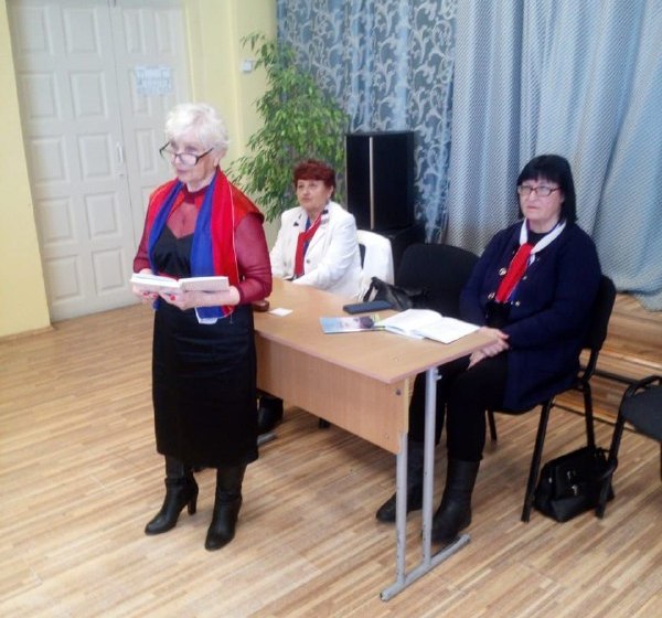 Затем выступил председатель литературного объединения Акимов Александр Алексеевич, он рассказал о творческом пути и создании «Золотого пера» и предоставил слово поэтессам Артемьевой З.Б. и Боровских Л.В.