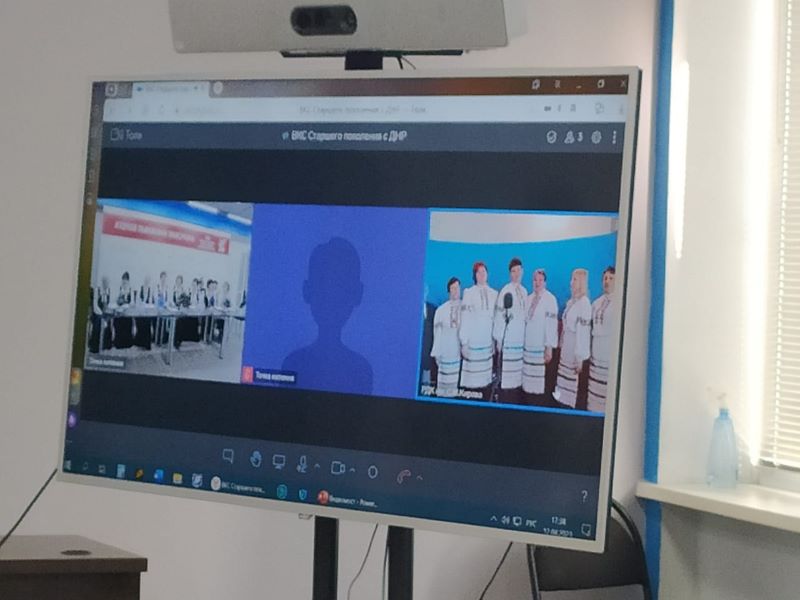 А затем был совместный концерт. Вокальный клуб «Молодушки» местного отделения Союза пенсионеров и вокальный коллектив старшего поколения «Чебрецы» города Амвросиевка ДНР исполняли песни на русском и украинском языках.