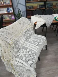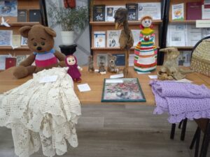 15-16 июня в рамках реализации губернаторского гранта в районной библиотеке Тамбовского муниципального округа была проведена выставка изделий декоративно-прикладного искусства , созданных руками пожилых людей . Были представлены разнообразные виды рукоделия 9 рукодельниц: вязание, вышивки, лоскутное шитье, резьба по дереву, изготовление кукол из различных материалов.