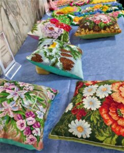 Теплом веет и от подушечек, которые в народе называют думочками. Они изготовлены и вышиты крестиком Ахметовой Людмилой Прокопьевной, работам которой было присуждено третье место.