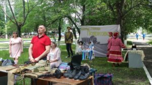 В фестивале приняли участие почитатели великих казачьих традиций, профессиональные и самодеятельные коллективы, солисты, популяризирующие казачью культуру, потомки Амурских, Донских, Терских казаков. С представителями Донских казаков мы встретились на фестивале. Филинов Андрей и его сын Богдан – родовые, то есть, потомственные казаки, предки -среди основателей села Константиновка. Андрей считает, что именно в родительском доме дети должны получать и патриотизм, и интерес к своим корням, к своей культуре.