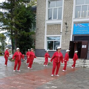 Артисты танцевально-оздоровительного клуба «Движение» на площади перед домом культуры исполнили танцы, которые взволновали и порадовали зрителей. В синих нарядных костюмах станцевали «Озера синие» под всем знакомую мелодию, меняются костюмы, и вот уже в алых костюмах исполняется танец «Огонек». Под аплодисменты зрителей, зажигательно исполнен танец «Сосед».