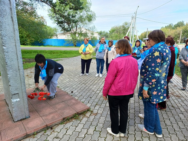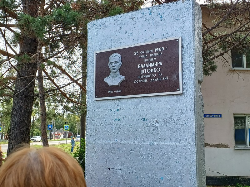 Из Благовещенска группа отправилась в с. Тамбовка, где пенсионеры возложили цветы к памятнику Владимиру Штойко, стрелку 199-го мотострелкового полка 45-го армейского корпуса, погибшему на острове Даманском в 1969 г. В память о герое в 1972 г. в родном селе был установлен этот памятник и была названа улица.