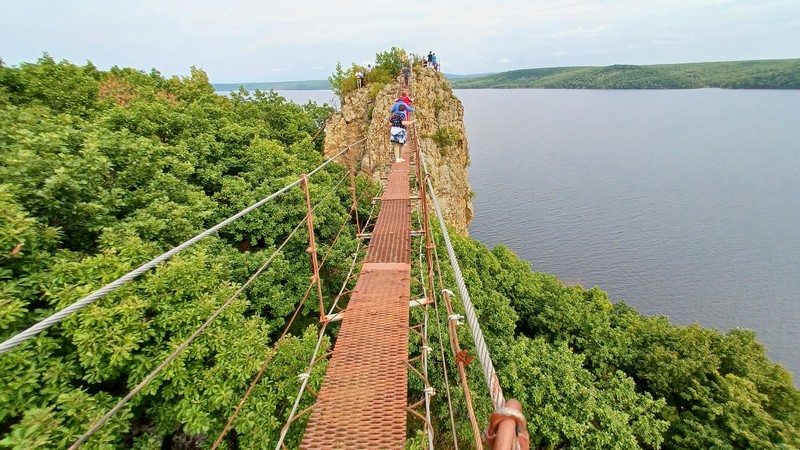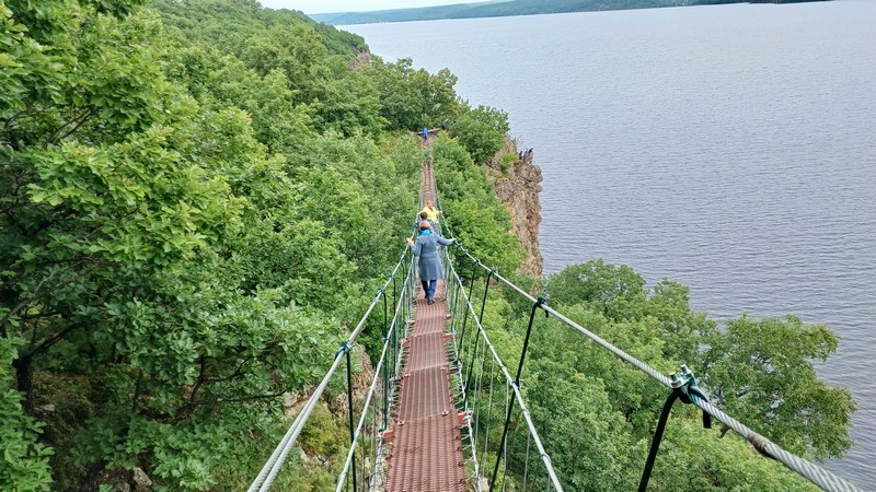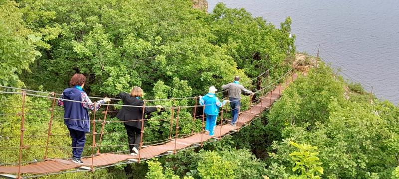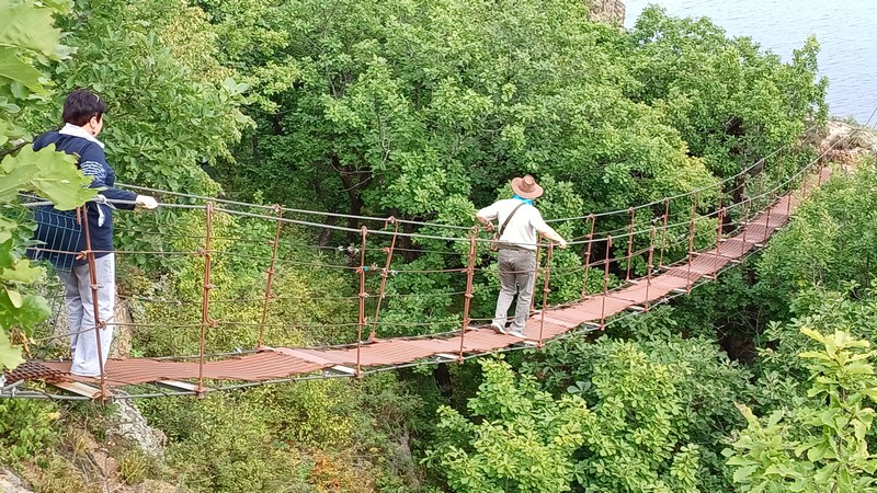 Затем группа поступила «в распоряжение» сына Владимира, тоже Владимира, который провел пенсионеров по лесенкам, сначала казавшихся непреодолимыми, к висячим мосткам и смотровым площадкам, расположенным на прибрежных скалах. Зрелище просто незабываемое, а впечатления – на всю жизнь!