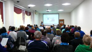 С большим интересом слушали выступление Быковой Екатерины Сергеевны, представителя министерства соцзащиты населения, рассказавшей, в частности, о деятельности центра «Доброта», санатории «Приозерье».
