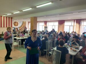 Ведущие Андреева Наталья, председатель Благовещенского совета союза пенсионеров России, и Бочкарева Любовь, руководитель недавно организованной в союзе театральной студии «Серебряный век», так повели это праздничное чаепитие, что нашлось время вспомнить историю комсомола, его трудовые и военные заслуги перед страной, послушать стихотворение Владимира Маяковского о комсомоле, которое с боевым задором прочла Любовь Демченко, просмотреть инсценировку песни «Прощальная комсомольская» , больше известной по первой строке «Дан приказ ему на запад, ей – в другую сторону», в исполнении Натальи Малаевой и Светланы Нечаевой.