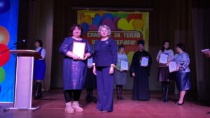 За активное участие в работе центра было награждено местное отделение союза пенсионеров России, награду вручила Гончарова Е.В.
