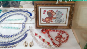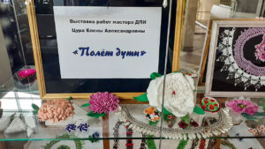 Рукоделием занялась в 2012 году. На выставке представлено более 50 работ в различных техниках исполнения: бисероплетение, вышивка крестиком, лентами, фриволите,вязание крючком, а также работы, выполненные стразами и из фоамирина.