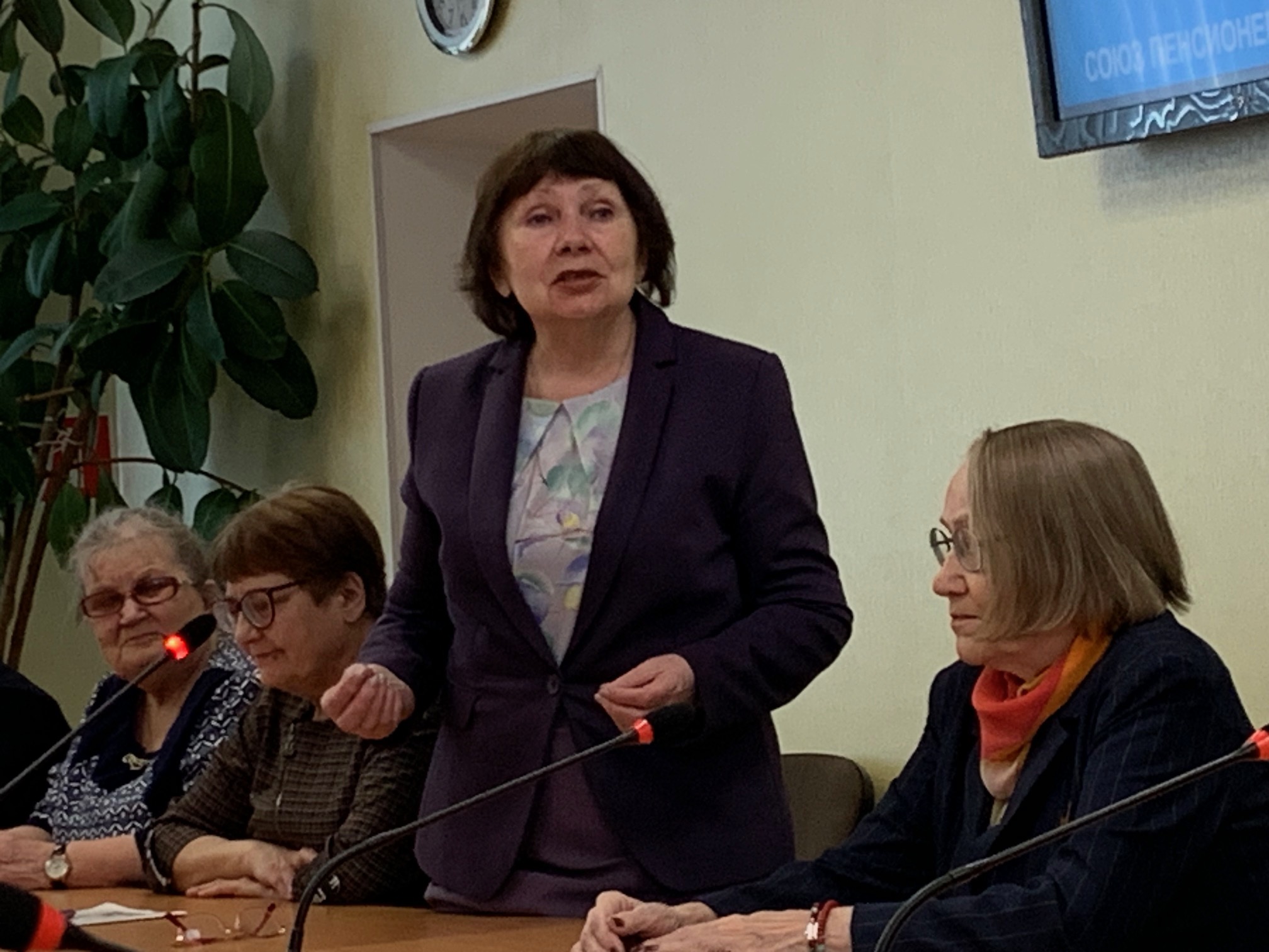 Кавалер ордена «Трудового красного знамени» Горева В.Г. поддержала выступающих в том, что только от каждого пожилого человека зависит его активная жизнь на пенсии и рассказала об участии старшего поколения в клубе «Золотая осень» и любителей поэзии «Меццо воче» и народном театре, где играет уже не одно десятилетие.