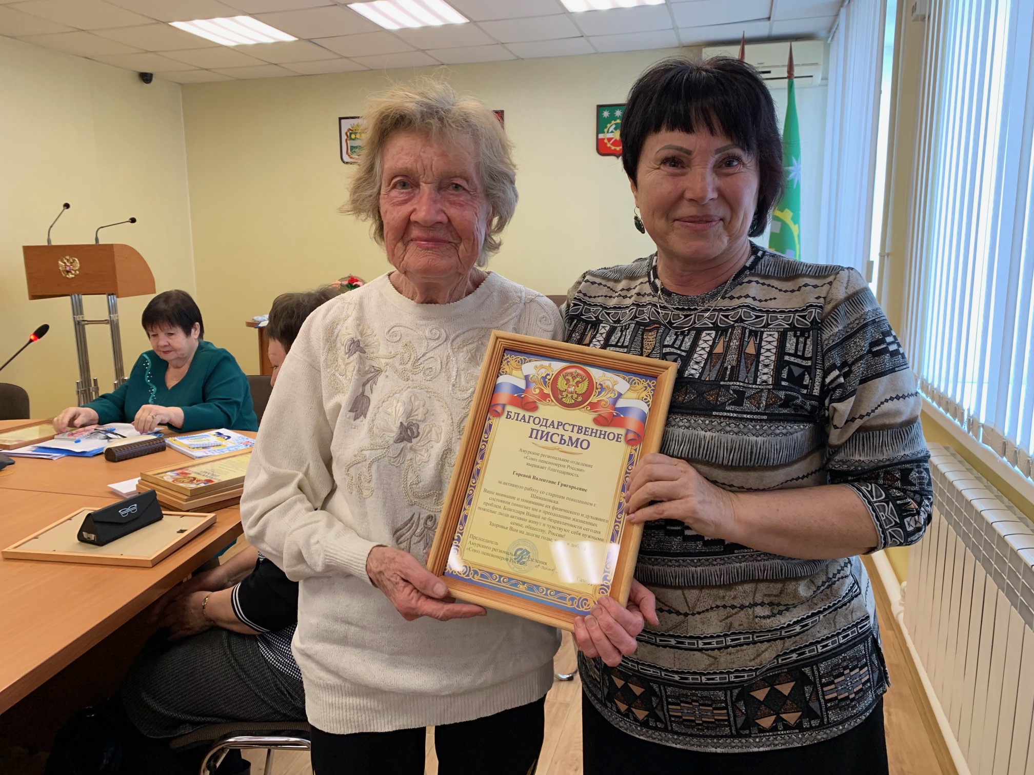 В местном отделении общероссийской общественной организации «Союз пенсионеров России» в городе Шимановске состоялось отчетно-выборное собрание, в работе которого приняли участие Колесникова О.В., заместитель председателя Амурского регионального отделения СПР, Лузина Г.И., член правления АРО СПР, Трофименко А.И., заместитель главы администрации города Шимановска, Опимах Л.Г., руководитель клиентской службы ПФР в Шимановске и Шимановском районе, Зиборова О.И., председатель совета ветеранов.