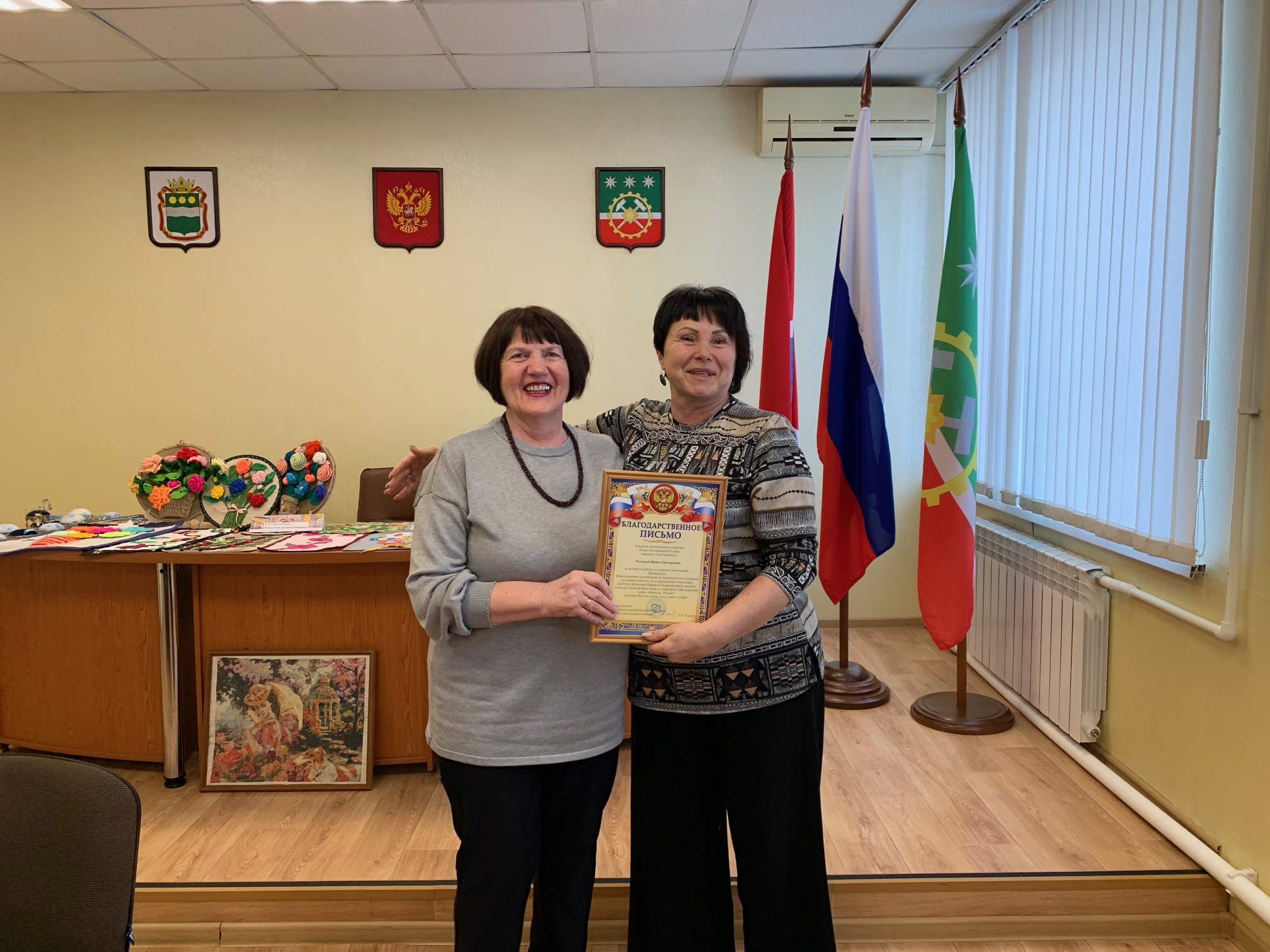 Колесникова О.В. вручила Благодарности Амурского регионального отделения СПР Котляренко Г.П., Горевой В.Г., Макаровой О.П., Русаевой И.Г., Ющенко Н.М., Якушевич В.И. Благодарностью АРО СПР награжден Гладков А.Ф.