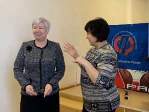 Гулимова Г.А. рассказала о деятельности хора ветеранов в необычной форме – исполнила частушки, чем вызвала и оживление в зале, и заслужила аплодисменты. Следует отметить, что вся жизнь местного отделения союза пенсионеров представлена красочными альбомами, которые оформляет каждый клуб или объединение. Очень информативный способ предать историю своей организации потомкам.