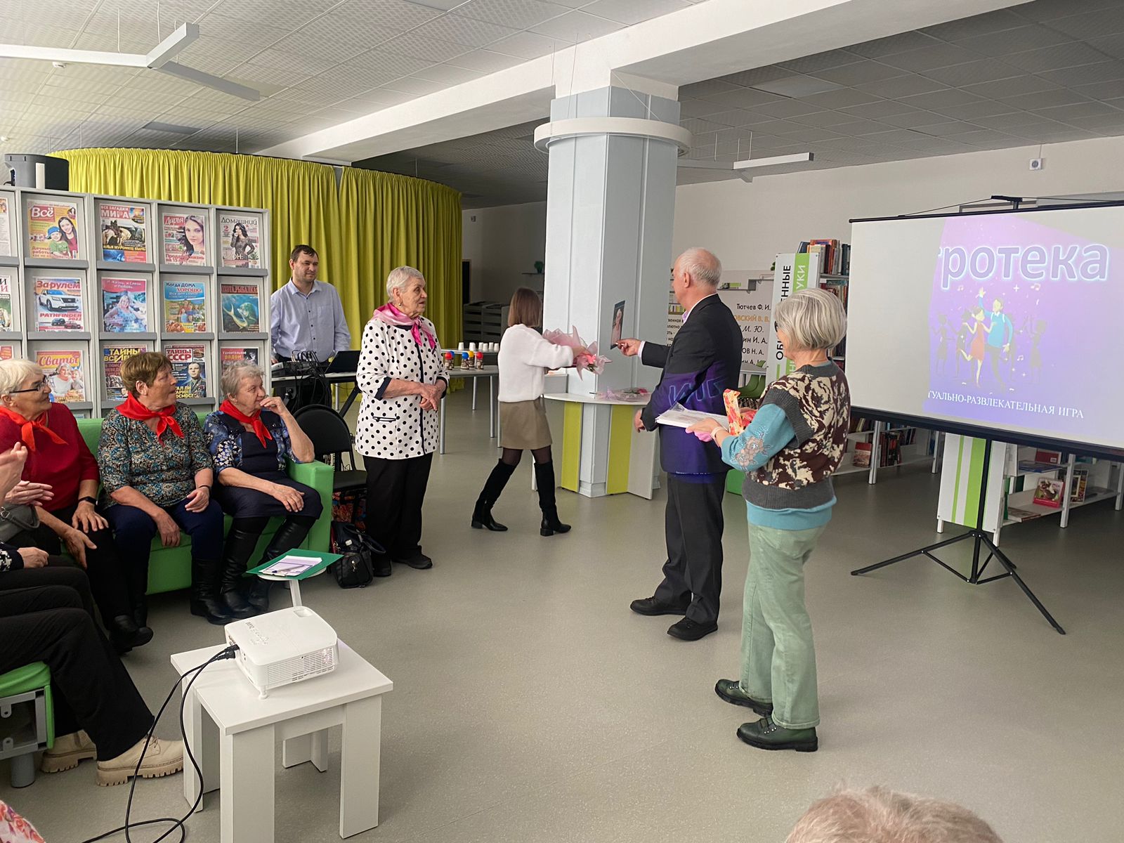 15.03.2024 согласно совместного плана работы Константиновской районной библиотеки и местного отделения союза пенсионеров России была проведена интеллектуально — познавательная игра «ИГРОТЕКА 60 +». В игре приняли участие пенсионеры, члены союза пенсионеров и члены совета ветеранов . Участвовало 2 команды — «Спортсмены» и «Светлячки — маячки», в каждой по 8 человек. Перед началом игры руководитель библиотеки Татьяна Алексеевна Черникова и руководители местного отделения союза пенсионеров и совета ветеранов поздравили члена союза пенсионеров России, руководителя клуба «Еще не вечер» Светлану Григорьевну Чупринюк с 80 — летним днем рождения. Ей были вручены благодарственные письма, приветственные адреса, ценные подарки и цветы.