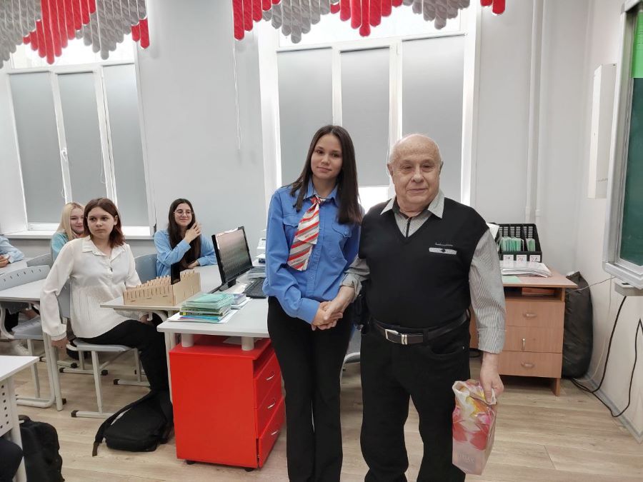 Ученики внимательно слушали ветерана, задавали вопросы, спросили и о том, каким сейчас видит Владимир Аркадьевич наш город. В конце встречи ребята поблагодарили гостя и сказали, что будут рады видеть его в нашей школе.