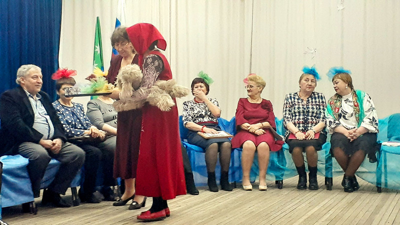 К юбилярам со своими поздравлениями заглянули известные «артисты» Ирина Алегрова (Семёнова Т.С.), Пьер Нарцис (Буряк Н.А.). Шаман (Неверова Т.А.) исполнил ритуал для здоровья. Жгучий кавказец (Ципа Т.Н.) и прекрасная индианка (Росина Е.А.) порадовали юбиляров своими танцами. Собирательный портрет изобразил на своем полотне художник (Иванкина Т.Б.). Всех этих героев пригласила Маша (Морева Л.В.) из мультфильма «Маша и медведь». 12 человек, отметившие значительную дату своей жизни были награждены подарками, вкусным пирогом и особенным вниманием.