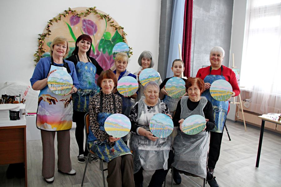 Участников ждало знакомство с основными приемами живописи, воплощение творческих идей, а также душевное общение и чаепитие.