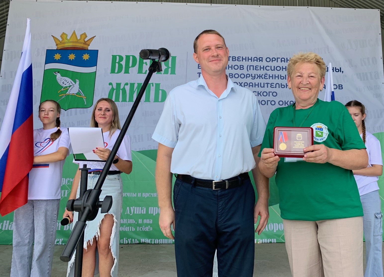 Прежде чем дать старт соревнованиям, Кукличев С.А. вручил Музыке Н.А. , председателю совета ветеранов Благовещенского округа, медаль, которой награждена первичная ветеранская организация за содействие специальной военной операции.
