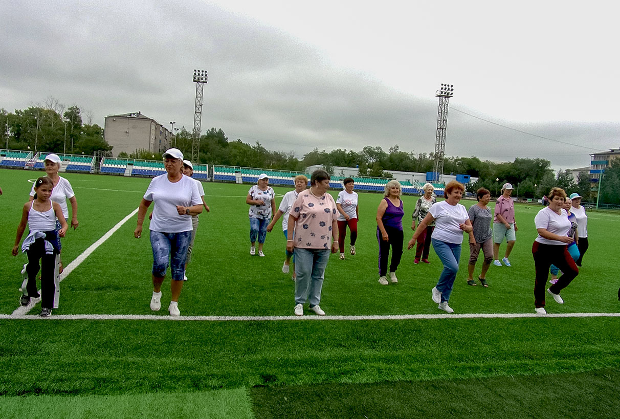 А в субботу на спортивных площадках МАУ стадиона «Амурсельмаш» прошли мероприятия, посвященные Дню физкультурника, где люди серебряного возраста провели спортивное время. С приветственным словом к присутствующим обратилась инструктор — методист физкультурно-спортивной организации Светлана Басистая, она поздравила всех с традиционным праздником здоровья, движения, силы и ловкости. Настроила и зарядила участников позитивом динамичная зарядка. Участники активно включились в процесс и выполняли все упражнения.