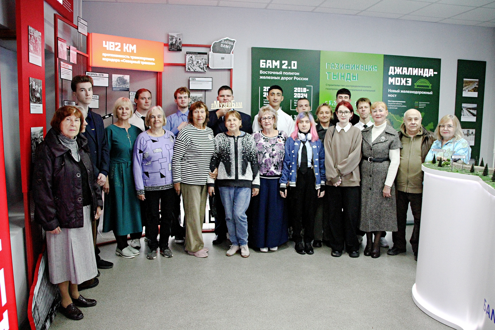 4 сентября в рамках реализации губернаторского гранта «Дорога длиною в 50 лет» в Тындинском музее истории БАМа прошла встреча студентов Дальневосточного государственного университета путей сообщения ( куратор группы Пинюгина Татьяна Сергеевна) с участниками строительства -ветеранами БАМа, членами местного отделения Союза пенсионеров России.