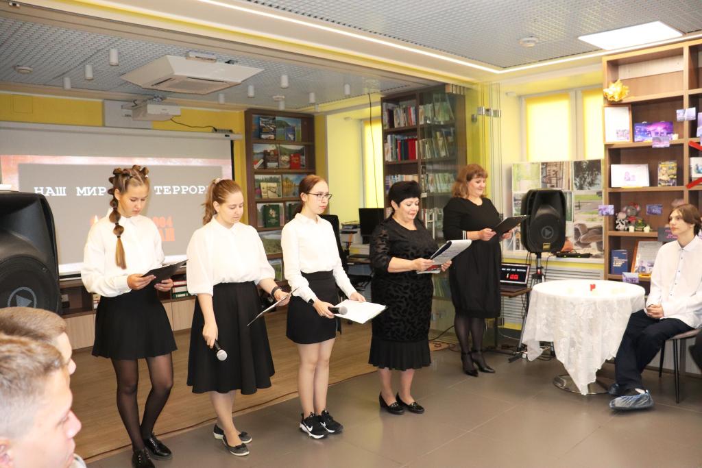 В Центральной городской библиотеке города Свободный члены литературного клуба «Вдохновение» местного отделения Союза пенсионеров России» совместно с учащимися 9-х классов школы №1 провели час памяти «Наш МИР без террора». Трагедия в осетинском городе Беслан свершилась до рождения присутствовавших на встрече подростков. Но детей надо учить сопереживать.