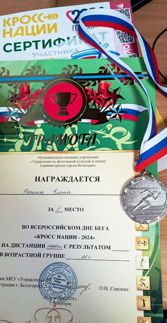 21 сентября 2024 года городской парк Белогорска стал площадкой для проведения Всероссийского дня бега «Кросс нации 2024» в рамках масштабного проекта «Спорт — норма жизни». «Кросс нации» — это ежегодное массовое соревнование по бегу на различных дистанциях, которое проходит во всех регионах страны. Основная цель — это пропаганда здорового образа жизни и привлечение граждан России к занятиям физической культуры. Главная особенность мероприятия в том, что в нем, независимо от уровня подготовки, может участвовать любой желающий, выбрав для себя наиболее комфортную дистанцию. Это настоящий праздник спорта и здорового образа жизни, общение с друзьями, заряд бодрости и хорошего настроения. Около тысячи участников всех возрастов, от дошкольников до ветеранов, вышли на старт, чтобы преодолеть свою дистанцию. С особой гордостью хочется отметить выступление спортсменок от Белогорской Городской Общественной Организации «Союз Пенсионеров». По итогам состязаний в возрастной группе 55+ 1 место заняла Гостевская Ольга ,2 место — Росина Елена .