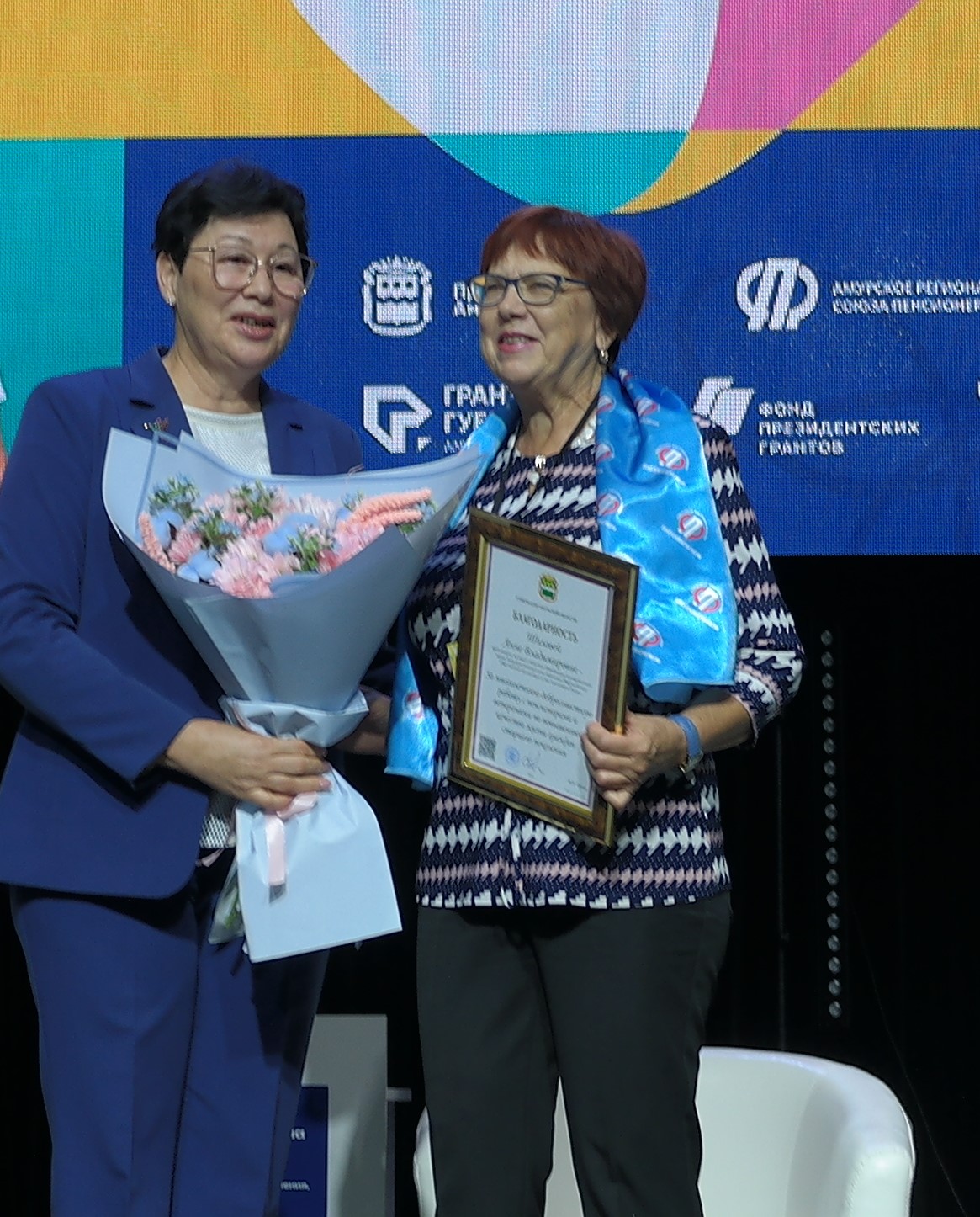 В Амурском региональном отделении союза пенсионеров России стало доброй традицией присваивать звание «Почетный председатель» тем председателям местных отделений, кто всю свою энергию, свободное время отдает общественной работе, возглавляя местные отделения. Вот и на мини-форуме состоялось торжественное посвящение в почетные председатели.