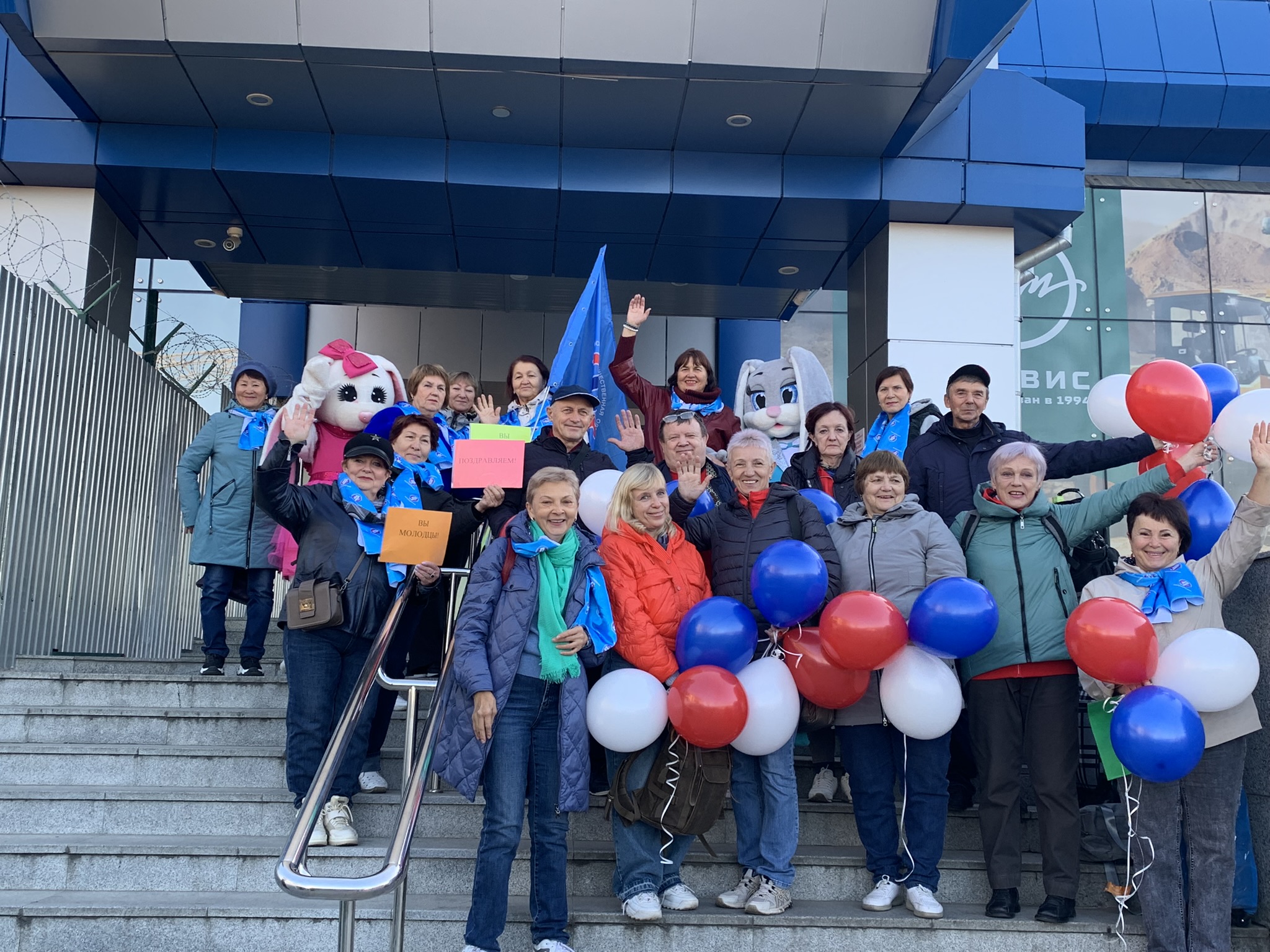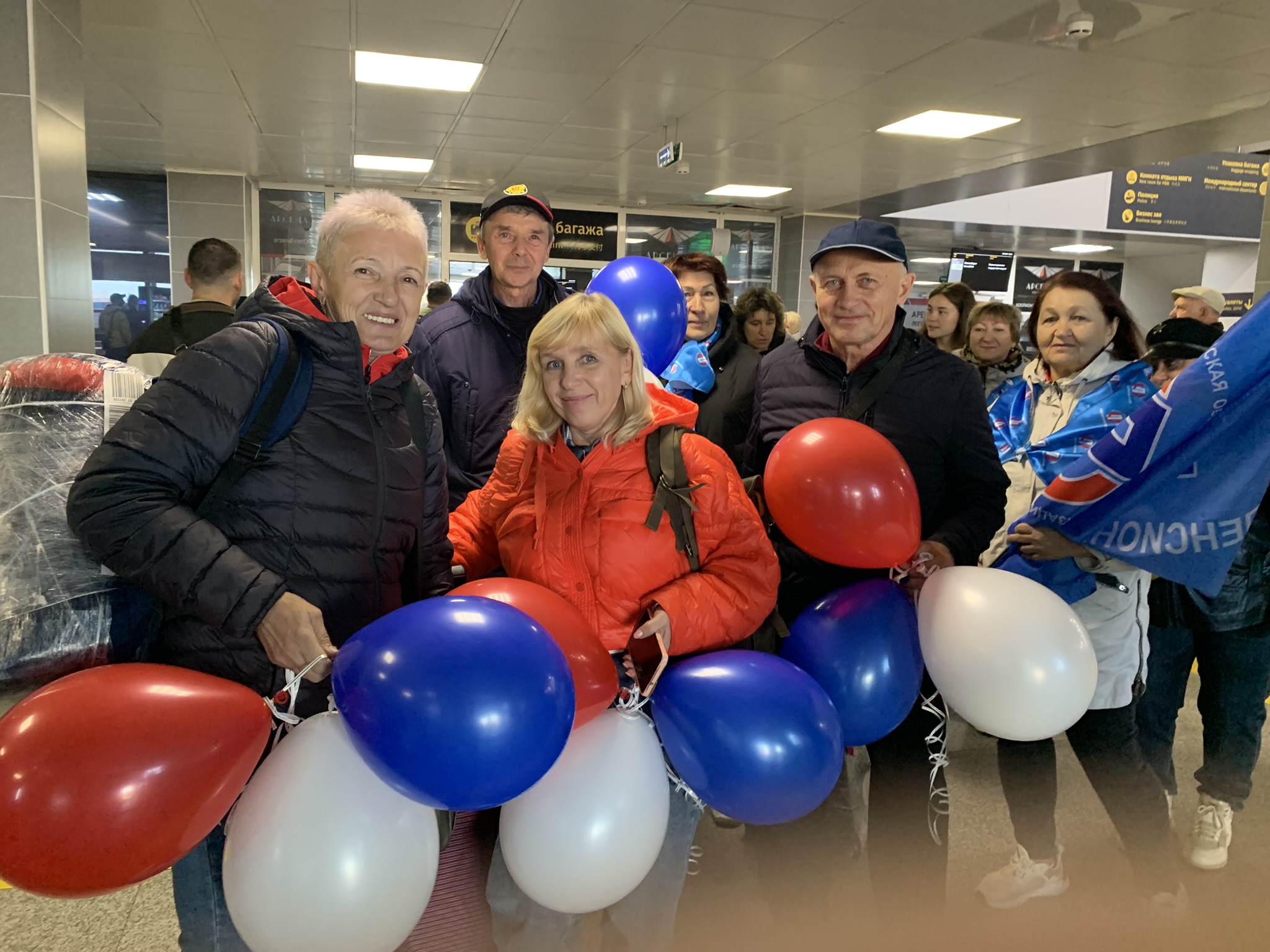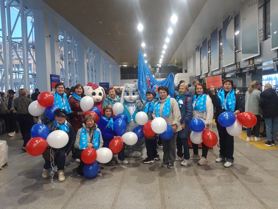 6 октября все, кто был утром в Благовещенском аэропорту наблюдали группу встречающих с флагами, воздушными шарами. Это -правление Амурского регионального отделения и активисты Благовещенского местного отделения союза пенсионеров готовились к встрече нашей команды.